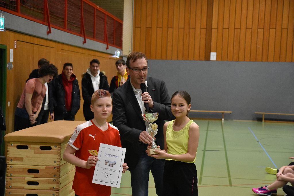 Traditionell am Rosenmontag wechselten die Schülerinnen und Schüler der Jahrgänge 5 und 6 ihren Platz an der Schulbank mit dem Völkerballfeld in der örtlichen Großsporthalle. Das alljährliche Turnier bot all das, was man sich im Vorfeld erhofft hatte: faire Begegnungen, stimmungsvolle Unterstützungen, bunte Trikots und das eine oder andere Karnevalsoutfit. Für Spannung war ebenfalls gesorgt, war das letzte Spiel des Völkerballturniers doch gleichzeitig ein Match um den Gesamtsieg, in dem sich die Klasse 6 C durchsetzen konnte. Begleitet von donnerndem Applaus erhielten sämtliche Teams eine Urkunde sowie die Siegerklasse den Wanderpokal, der für den Zeitraum eines Jahres einen Platz im Klassenraum finden wird. Ein herzliches Dankeschön hatte sich die Fachgruppe Sport für die Organisation des Turniers sowie ältere Schülerinnen und Schüler für Schiedsrichtertätigkeiten bzw. für die Bereitstellung des Schulsanitätsdienstes verdient.