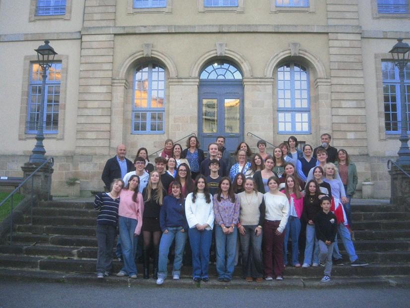 Am Samstag, den 04.10.2025, begann unsere Reise nach Frankreich, früh am Morgen um 6:45 Uhr. Die Hinfahrt dauerte mehrere Stunden und führte uns, mit insgesamt drei Zügen, bis nach Limoges. Dabei saßen wir in der 1. Klasse, wo wir sogar mit kleinen Leckereien versorgt wurden. Um uns die Zeit zu vertreiben, schauten einige gemeinsam Serien, spielten Kartenspiele oder holten etwas Schlaf nach. Natürlich lief nicht alles nach Plan. Auf dem Weg nach Paris, mit der Deutschen Bahn, hatten wir eine Verspätung von rund 30 Minuten. Als wir dort gegen 15:30 Uhr ankamen, hieß es plötzlich: „Rennen!“. Mit unseren Koffern im Schlepptau sprinteten wir zur Metro und weiter zu unserem Zug. Erst um 20 Uhr erreichten wir schließlich Limoges. Trotz Müdigkeit machten einige mit ihren Gastfamilien noch eine kleine nächtliche Tour zu Fuß oder mit dem Auto durch die Stadt, bevor wir völlig erschöpft aber glücklich ins Bett fielen.