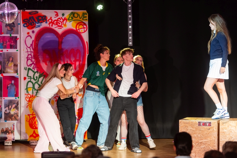 Es ist eine der berühmtesten Liebesgeschichten der Welt: Romeo und Julia. Die beiden Kurse DSP 12 im Schuljahr 2024/25 brachten sie frei nach Shakespeare auf die Bühne – in einer Collage aus moderner Sprache und Versform, versetzt in die heutige Zeit und mit dem Tod als erzählendem und entscheidendem Element.
