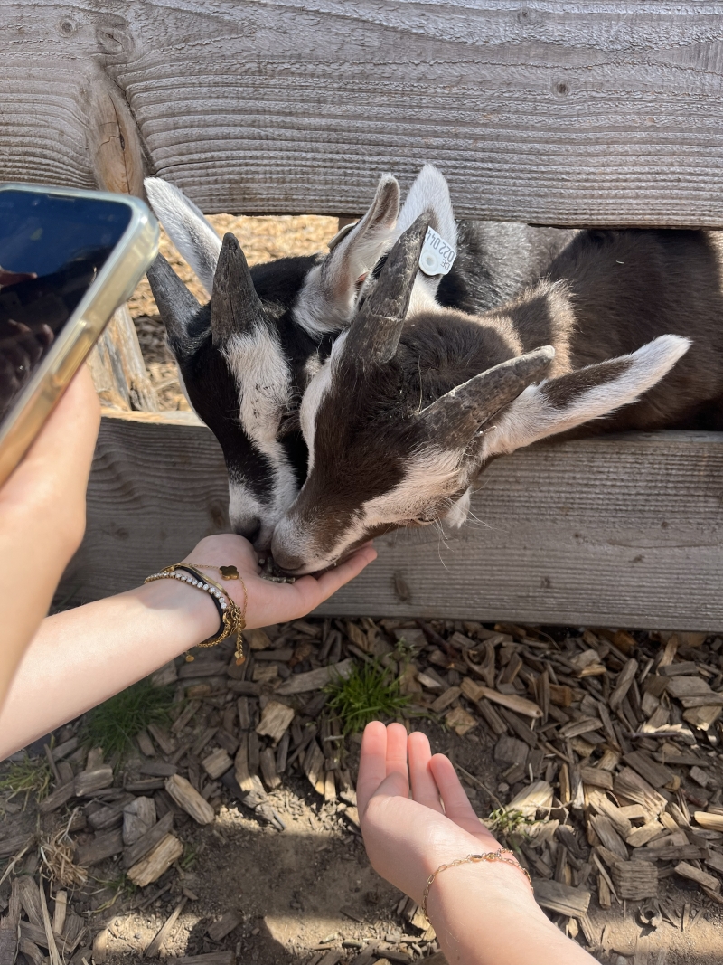Jetzt ging es für die andere Hälfte zu den Projekten. Heute stand der Hof an den Teichen auf dem Programm. Wir haben uns das Gelände angeschaut, die Schweine besucht, Pflanzen geerntet und aus trockenen Blättern Kräutersalz gemacht – lecker! Dann ging es weiter zu den anderen Tieren. Dort haben wir mit Truthähnen „kommuniziert“ und süße Babyziegen gefüttert. Einige waren auch bei der Kuh. Sie heißt Babuschka und wurde sehr, sehr gerne gestreichelt. Wir haben uns alle wieder ein leckeres Bio-Eis vom Hof gegönnt und sind dann zum zweiten Programmpunkt des Tages weitergefahren: in den Wald. Dort haben wir lustige Spiele gespielt und Tiere beobachtet. Es gab sogar Gummibärchen als Preis. Am Abend sind wir dann alle Döner essen gegangen. Den mussten die Austauschschüler*innen einfach probieren – und wir Deutschen hatten natürlich auch nichts dagegen.