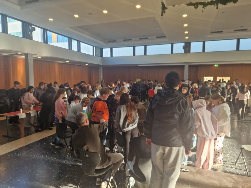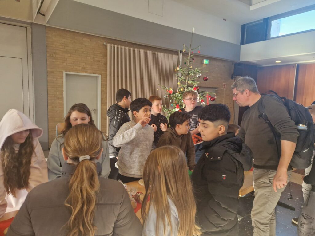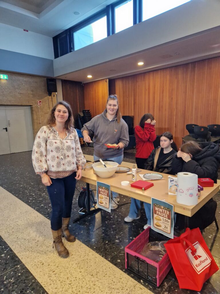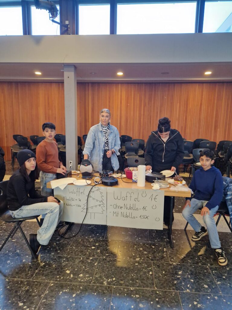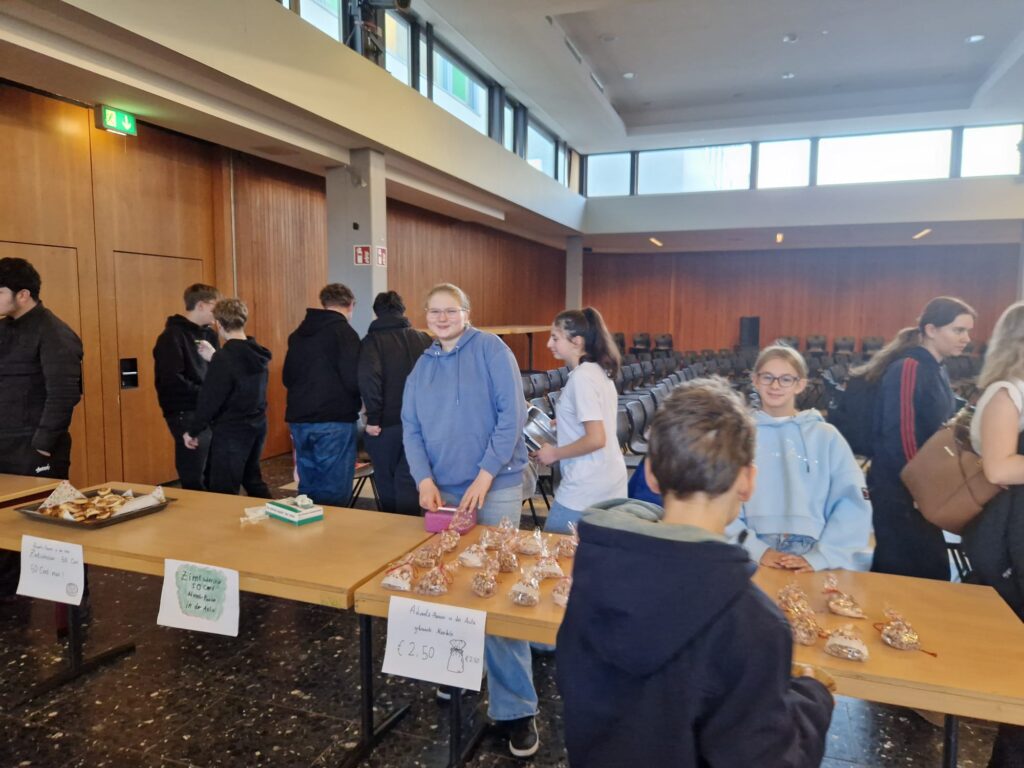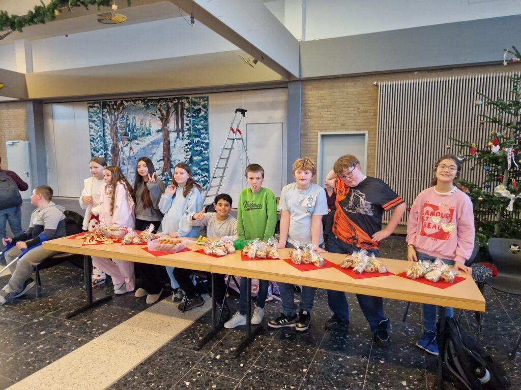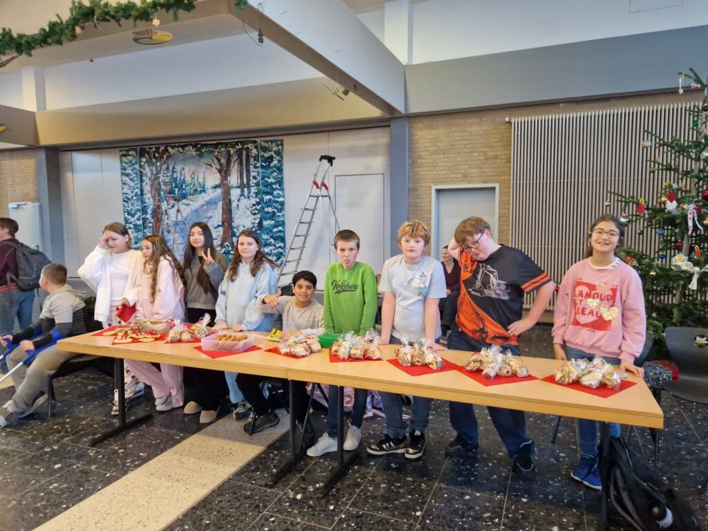 Am 1. Dezember verwandelten sich unsere Pausen in einen kleinen Weihnachtsmarkt: Schülerinnen und Schüler aus verschiedenen Klassen boten selbstgebackene Plätzchen, frische Waffeln, Zimtschnecken, gebrannte Mandeln und viele weitere Leckereien an. Mit viel Engagement wurde vorbereitet, gebacken, dekoriert und verkauft – und die Begeisterung war in der gesamten Schulgemeinschaft spürbar.