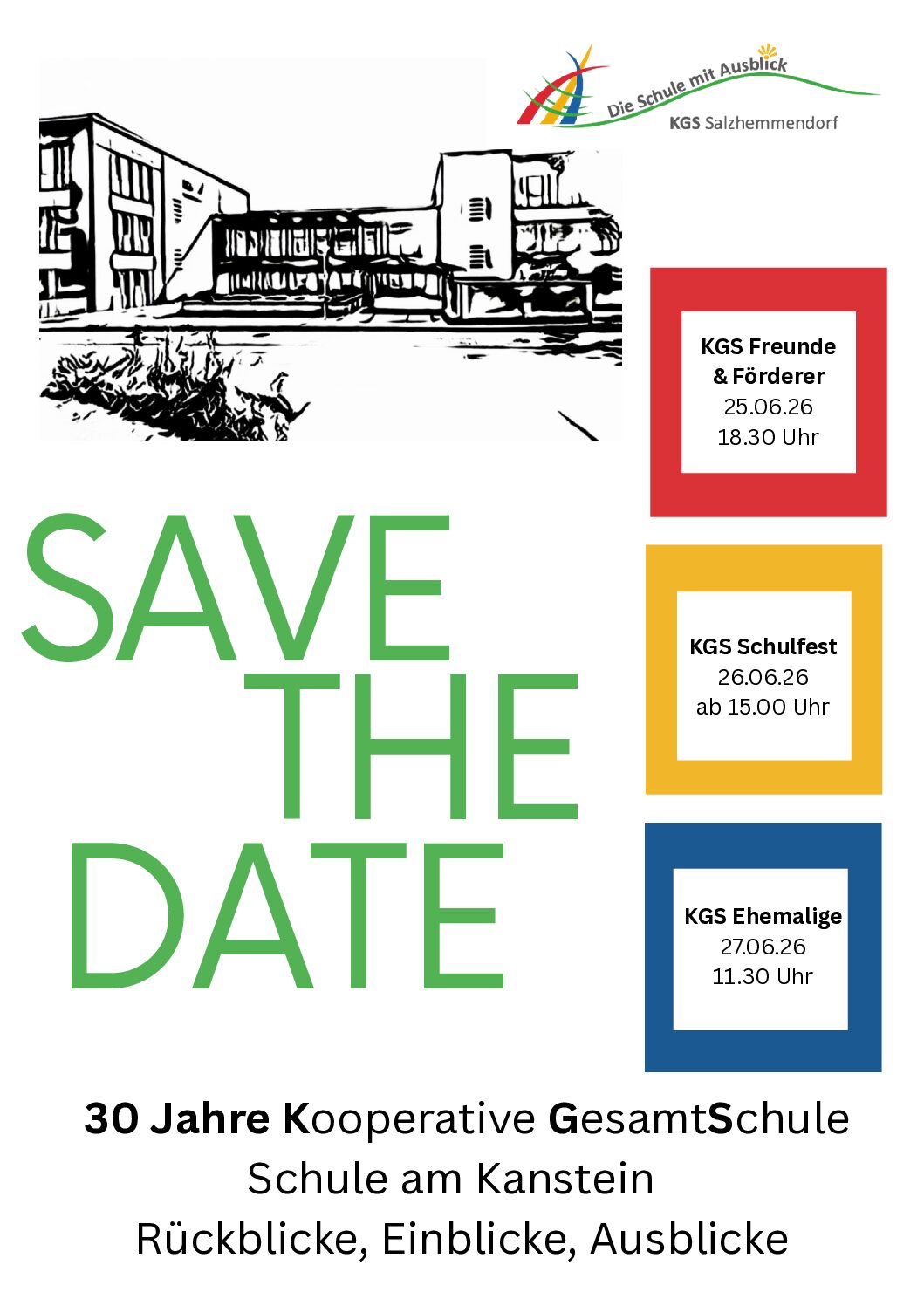 Allgemein 30 Jahre Kooperative GesamtSchuleSchule am KansteinRückblicke, Einblicke, Ausblicke 9. Dezember 2025 Save the Date aktuellHerunterladen