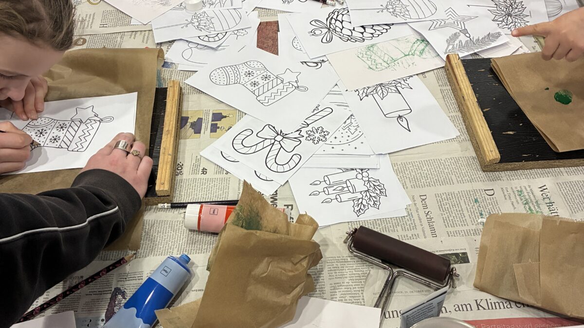 Besonders beliebt waren die zahlreichen kreativen und kulinarischen Angebote, die von Schülerinnen und Schülern vorbereitet worden waren. Kinder standen fröhlich Schlange beim Kinderschminken, während andere sich über Zuckerwatte, Kinderpunsch oder einen frisch zubereiteten Crêpe freuten. Eine Mutter einer fünfköpfigen Familie brachte die erfreuliche Preisgestaltung der Stände mit einem Lächeln auf den Punkt: „Hier kann sich zumindest die ganze Familie ein Crêpe leisten.“ Neben dem süßen Angebot fanden sich auch herzhafte und handwerkliche Attraktionen wie Holzschnittarbeiten, dekorative Handwerke und unterschiedlichste selbst gebastelte Artikel, die mit viel Liebe zum Detail hergestellt worden waren. Besonders die selbst gemachte Weihnachtsdeko fand großen Anklang und wurde vielfach als kleines Geschenk oder als Dekoration für die Adventszeit mit nach Hause genommen. Der 12 Jahrgang verkaufte Kaffee und Kuchen in der Cafeteria.