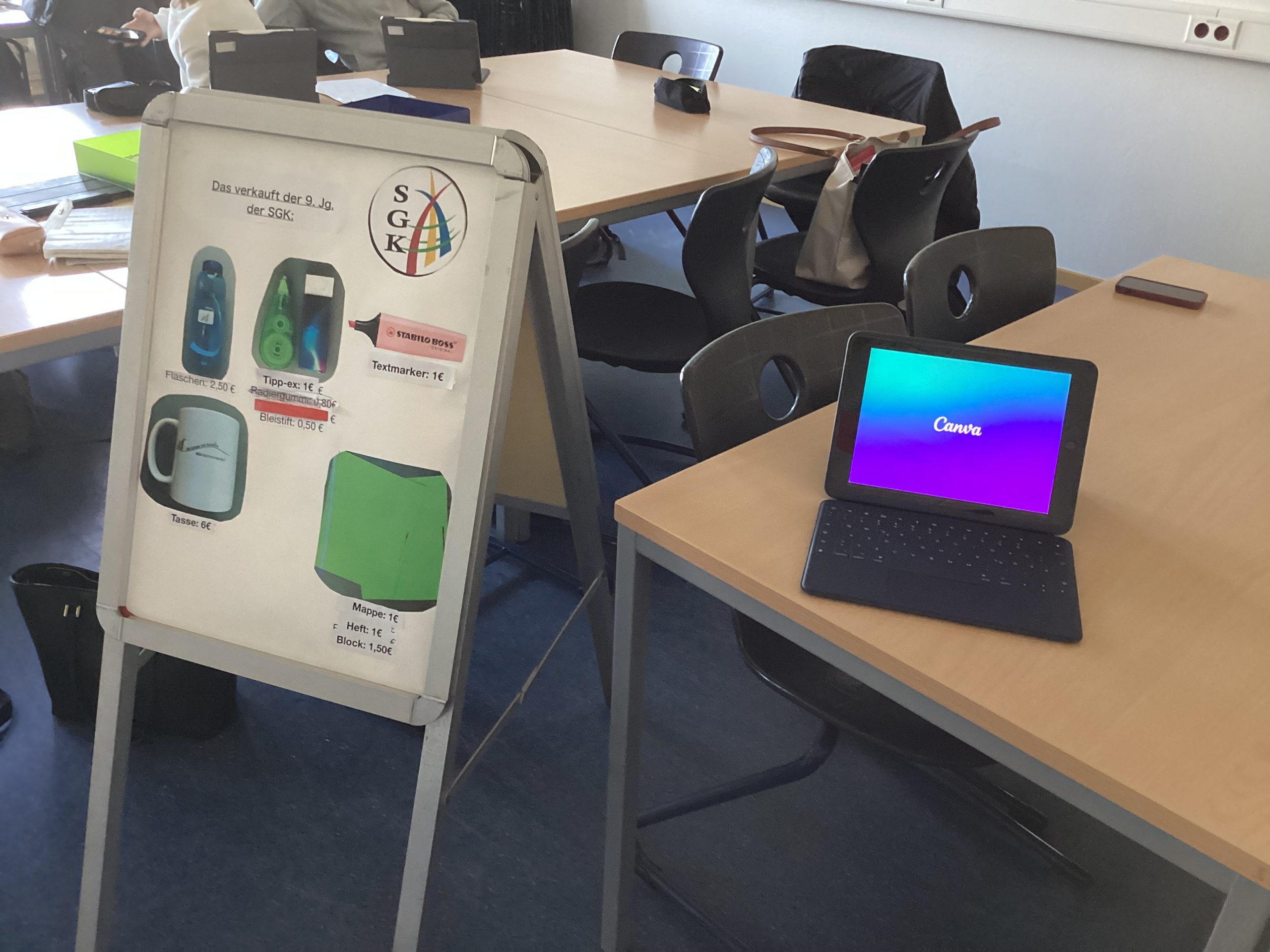 Die Marketingabteilung ist für Plakate und Kreativität zuständig. Sie arbeitet viel digital, insbesondere mit der App Canva. Dabei kooperiert sie viel mit dem Verkauf, da sie Plakate, Flyer oder Preislisten für Verkaufsaktionen gestaltet. Im Marketing ist es zwar nützlich zeichnen zu können, allerdings ist es viel wichtiger einen kreativen Kopf zu haben und zu wissen, wie man den Kunden ansprechen kann.