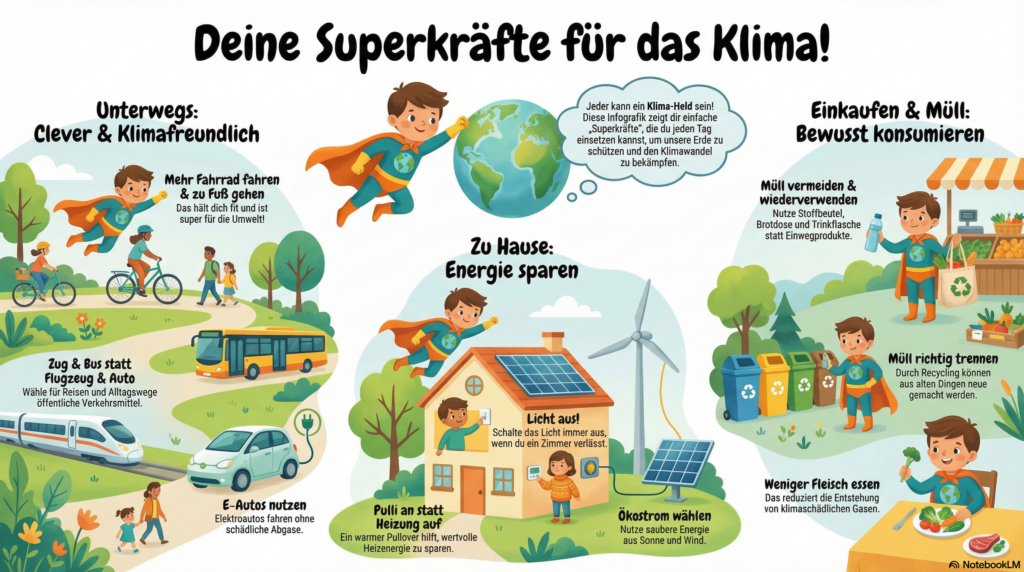 Quellen: CheXpedition: Dem Klimawandel auf der Spur (ARD Mediathek), Klimawandel (klexikon.de); Text überarbeitet mit gemini.google.com (KI); Infografik aus unserem Text erstellt mit notebooklm.google.com, Bilder von pixabay.com