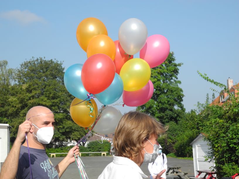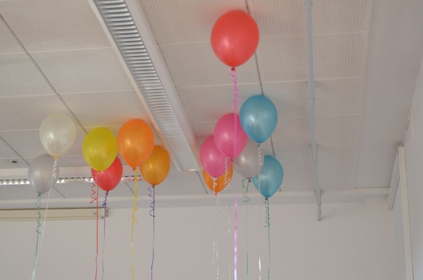 gestaltete Poster und Dekorationen. Die Lehrerinnen und Lehrer haben nicht nur