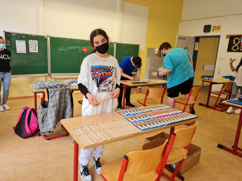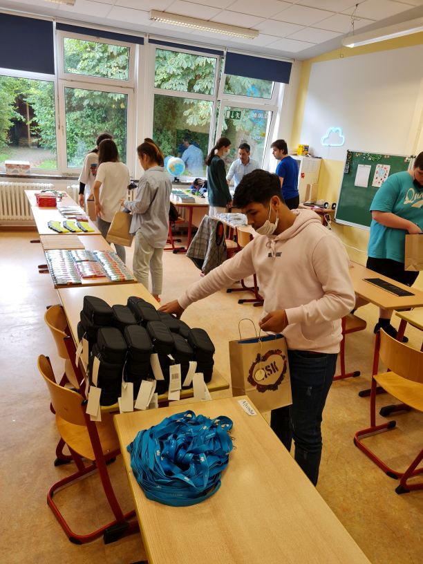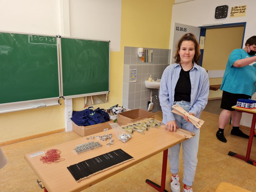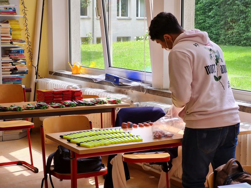 Schüler*innen haben vor den Sommerferien bei der Zusammenstellung der Starterpakete geholfen.
