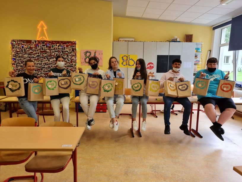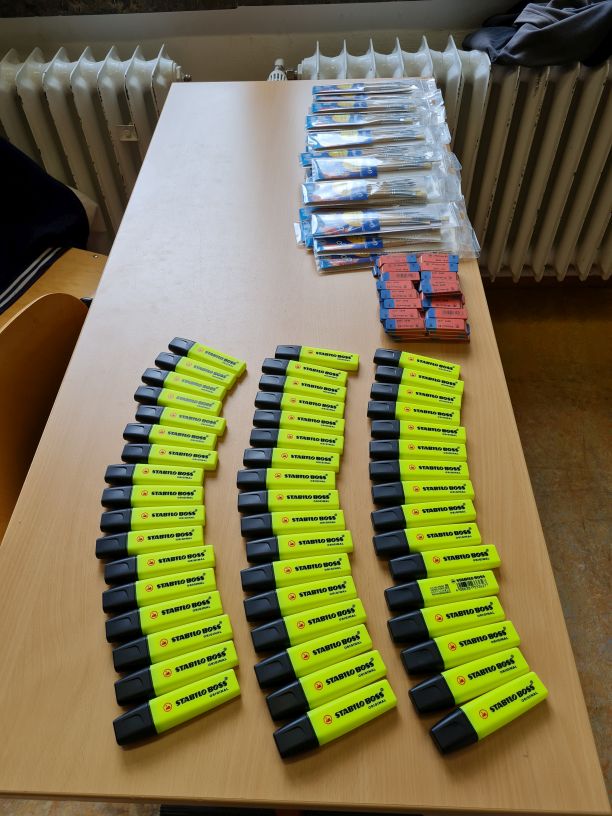 In den Schuljahren 2019/20, 2020/21, 2021/22 haben Sponsoren, der Förderverein und viele Helfer Sachspenden in Form HSK-Starterpakete zusammengestellt und an allen SchülerInnen der neuen fünften Klassen übergeben. Die Freude war jedes Mal riesig!