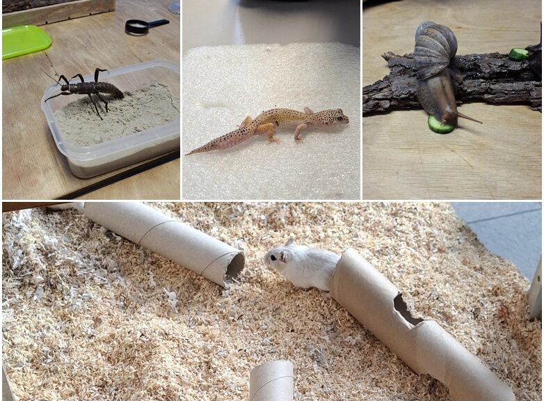 Unsere Schülerinnen und Schüler durften viele spannende Tiere sehen und manche sogar anfassen und füttern. Mit dabei waren zum Beispiel: gut getarnte Stabschrecken, Riesengespenstschrecken, neugierige Wüstenrennmäuse, riesige Achatschnecken und ein cooler Leopardgecko.
