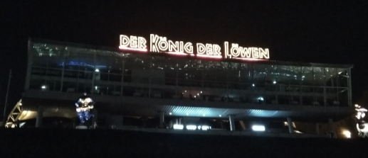 Die Gruppe brach um ca 14:30 Uhr nach Hamburg auf. Die große Euphorie und Aufregung wurde nicht einmal durch die dreistündige Fahrt unterbrochen. Kurz nach fünf machte sie sich auf den Weg zu den Fähren, die sie über die Elbe bringen sollten. Dann betrat die Gruppe das berühmte Gebäude, in dem das Musical stattfand. Der Saal war reichlich gefüllt und die Aufführung begann wie geplant pünktlich um 18:30 Uhr. Bereits die erste Hälfte des Stückes war schauspielerisch und gesanglich sehr beeindruckend. Nach einer 20-minütigen Pause ging es dann in die zweite Halbzeit, der es ebenfalls keineswegs an Qualität mangelte. Eine Schülerin bestätigte: „Ich persönlich empfand die zweite Hälfte noch emotionaler als die erste. Besonders gefallen hat mir die Stelle, als Mufasa aus den Sternen zu Simba gesprochen hat.“