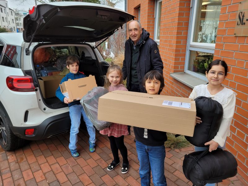 Decken, Schlafsäcke, Isomatten – das sind gerade die wichtigsten Dinge, die sehr viele Menschen in der Ukraine bei extrem hohen Minusgraden benötigen. Im 4. Kriegsjahr leben viele Menschen ohne Strom und Heizung in kalten Wohnungen, Kellern oder U-Bahn-Stationen. Ohne Strom kann kein warmes Essen gekocht werden. Daher haben viele Kinder auch  Dosen-Fertiggerichte mitgebracht. Heute wurden die Spenden abgeholt. Am 17.2.26 werden sie mit einem LKW in die Ukraine gebracht. DANKE, liebe Familien, für Ihre Unterstützung!