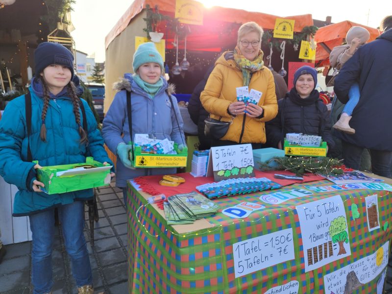 Die Kinder der 4. Klasse verkaufen wieder die GUTE SCHOKOLADE von Plant-for-the planet: 5 Tafeln = 1 Baum.