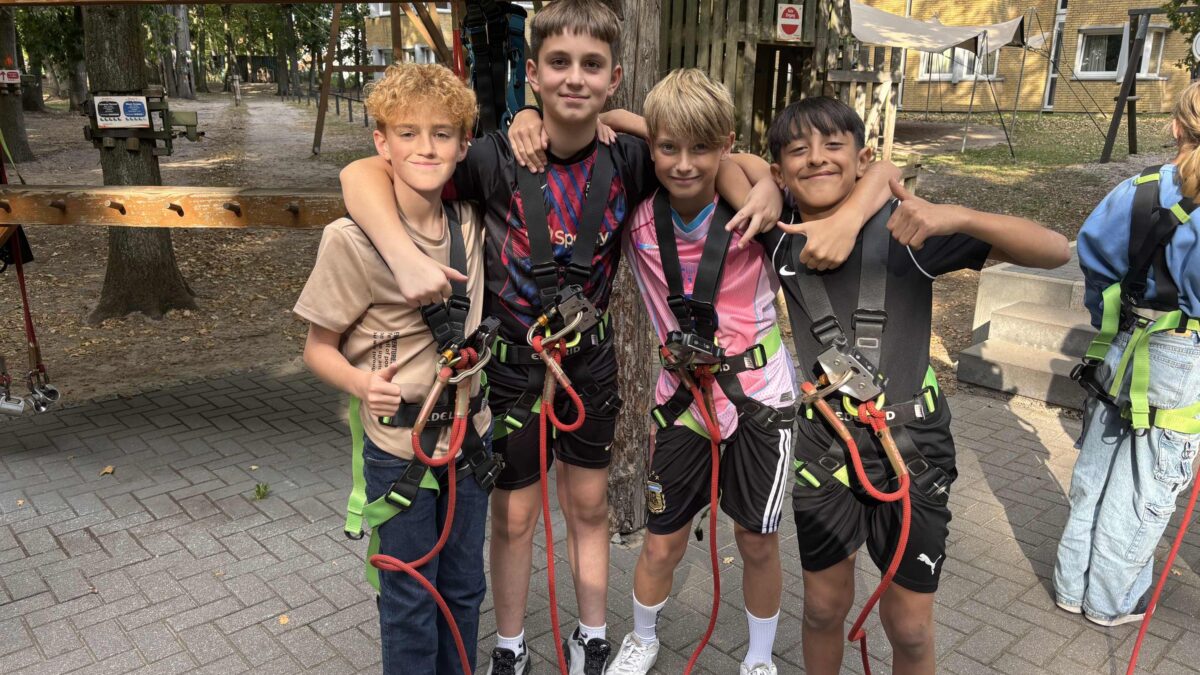 Am Nachmittag wartet dann DAS Highlight der Klassenfahrt auf 37 unternehmungslustige Schüler/innen, denn es geht in den Kletterpark. Gurte selber anlegen? Kein Problem! Helm auf? Selbstverständlich! Und ab jetzt lautet das Motto: Wer braucht schon Boden unter den Füßen? Von der Anfänger-Strecke in grün bis zur „Nerven-aus-Stahl“-Variante in schwarz ist alles dabei. Die Lehrkräfte staunen nicht schlecht, wer da so alles über sich hinauswächst.