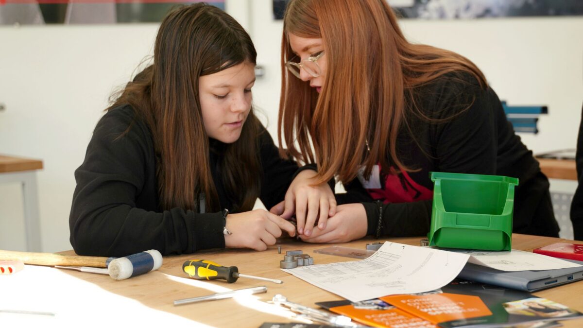 Handwerkliches Geschick war hingegen bei der Firma SPI gefragt. Hier montierten die Schüler*innen kleinere Metallteile nach Anleitung. Einige Konstruktionen konnten anschließend sogar mithilfe von Zahnrädern in Rotation versetzt werden, was viele Teilnehmende besonders faszinierte.