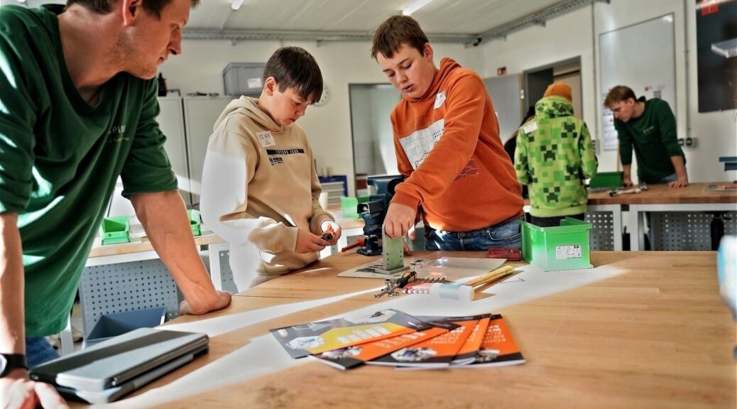Handwerkliches Geschick war hingegen bei der Firma SPI gefragt. Hier montierten die Schüler*innen kleinere Metallteile nach Anleitung. Einige Konstruktionen konnten anschließend sogar mithilfe von Zahnrädern in Rotation versetzt werden, was viele Teilnehmende besonders faszinierte.