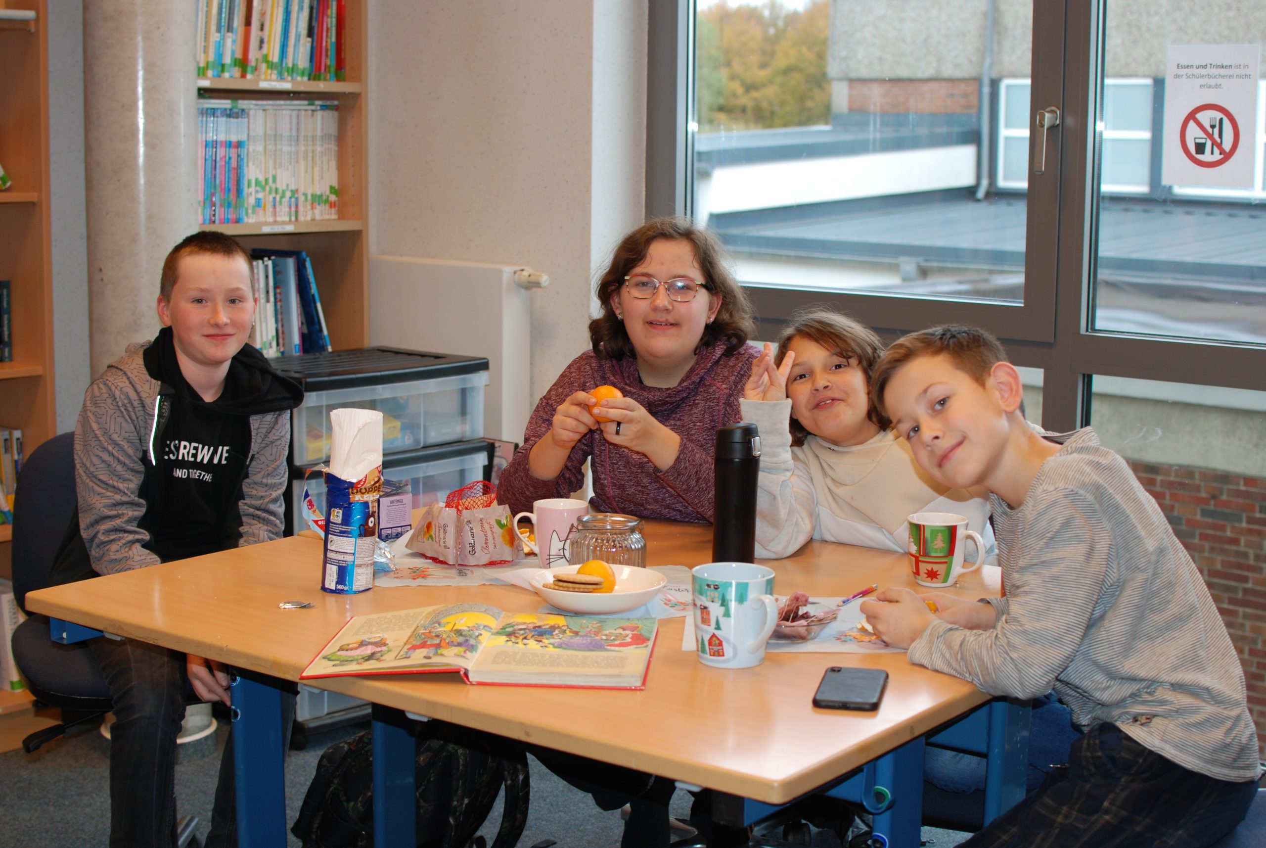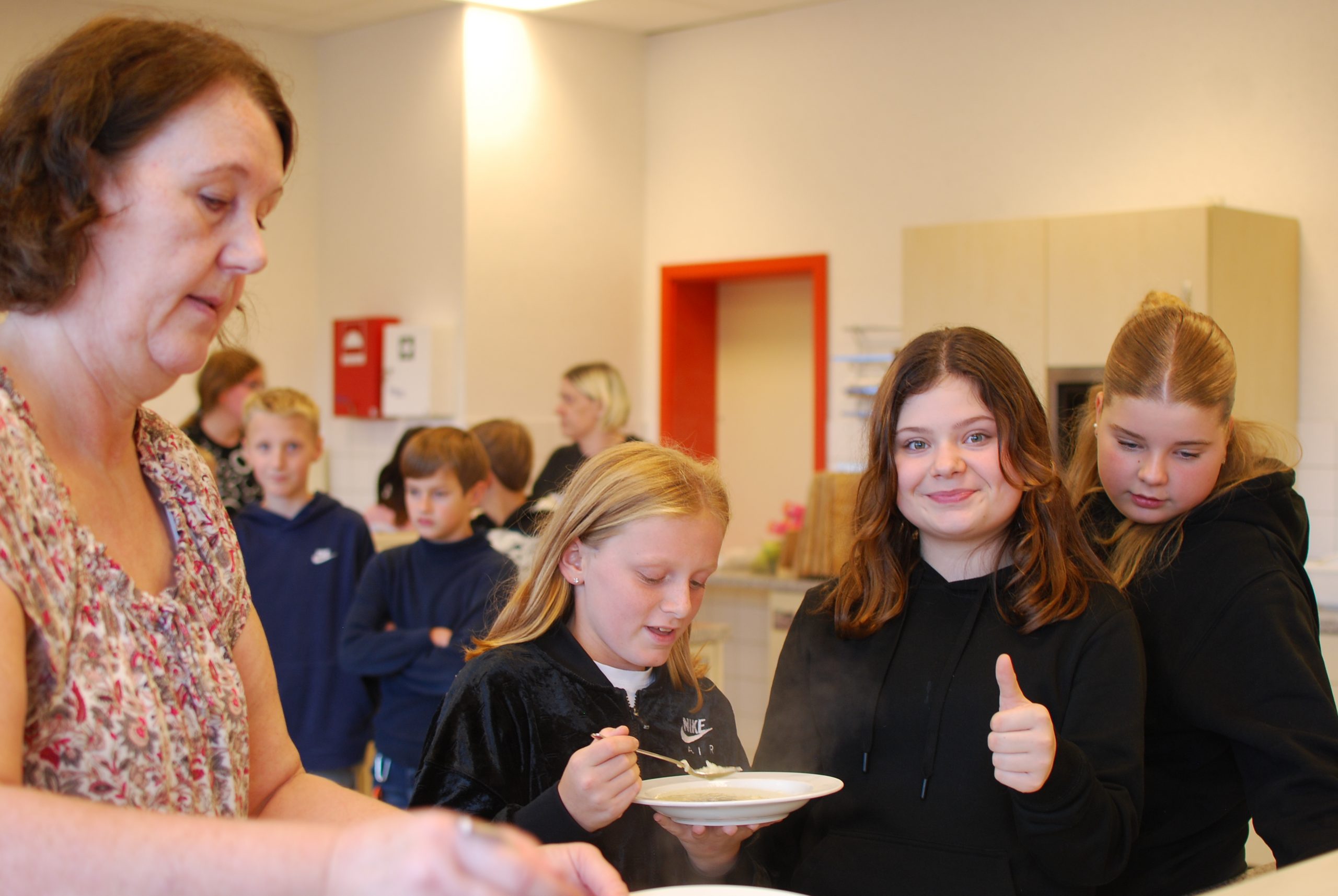 Der Name ist Programm! In der großen Schulküche probieren wir gemeinsam kleinere Gerichte aus. Gerne sind auch Nachspeisen dabei, weil man sie schnell zubereiten kann und sie so lecker sind. Je nach Jahreszeit verarbeiten wir auch mal Obst zu Marmelade.