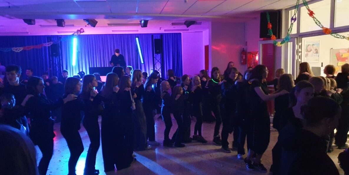 Was für eine Nacht! Am vergangenen Freitag haben wir unsere Aula kurzerhand zur Party-Zone erklärt. Statt Mathe-Formeln gab es fette Beats und Neon-Vibes! Passend zum Motto „All Black“ haben unsere Schülerinnen und Schüler den Dresscode richtig stark umgesetzt – die Stimmung war von Anfang an absolut on fire! Ein riesiges Dankeschön geht an DJ Lutz & DJ Obi, die an den Decks alles gegeben und die Tanzfläche zum Beben gebracht haben! Auch unserer Schülervertretung sowie Frau Wolters und Herrn Eick ein riesiges Dankeschön für die krasse Orga im Hintergrund. Ohne sie wäre das nicht möglich gewesen!