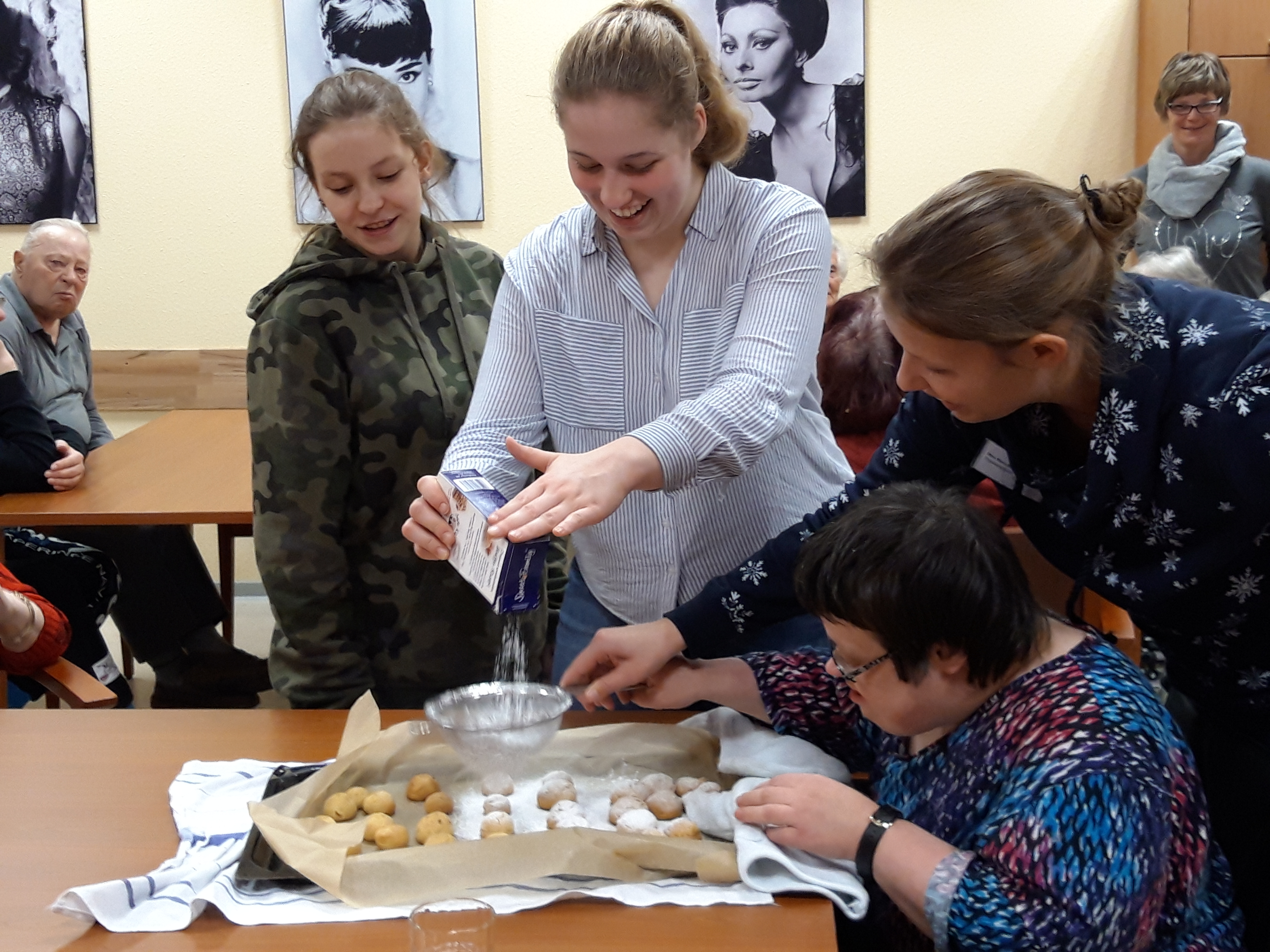 Im Dezember backen die Schüler gemeinsam mit dem Bewohnern des Curanums Plätzchen, lesen Geschichten vor und singen gemeinsam Weihnachtslieder.