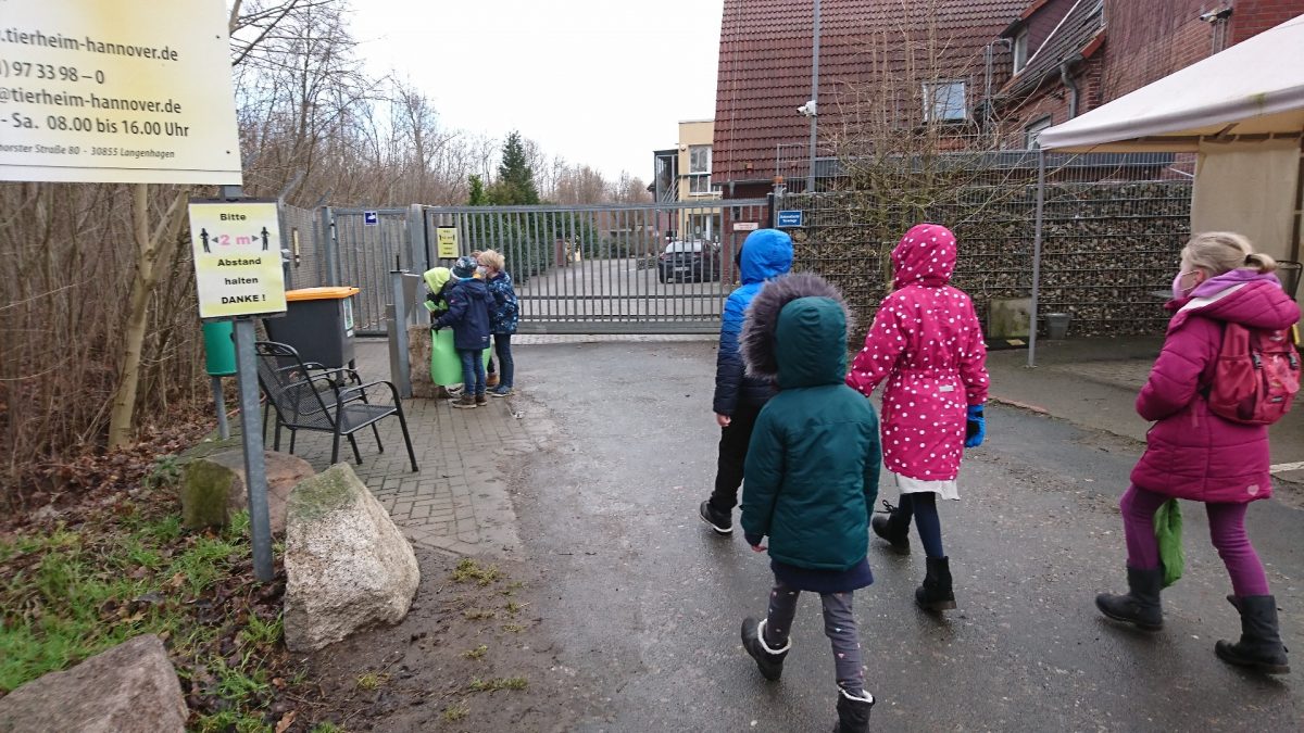 Am 16.12.2021 hatten wir unseren Räuberflohmarkt. Wir haben in der Schule unsere alten Spielsachen verkauft. Unsere Klassen haben Teams gebildet und die Stände vorbereitet. Es ging um 12:20 Uhr im Räuberhaus los. Insgesamt kamen 215,42€ zusammen. Für die Spende hatte jede Klasse 2 Vorschläge, dann haben wir abgestimmt wohin das Geld gehen soll. Jedes Kind hatte einen Klebepunkt um abzustimmen, gewonnen hat das Tierheim. Am 20.1.2022 sind wir zum Tierheim gegangen. Zuerst sind wir mit der Bahn gefahren. Dann haben wir eine Frau nach dem Weg gefragt und haben die Bushaltestelle gefunden. Nach der Busfahrt sind wir neben der Schnellstraße zum Tierheim gegangen. Am Tierheim haben wir unseren Scheck der Tierheimleitung Frau Forentheil überreicht. Die Tierheimleitung hat uns Comics und Bücher geschenkt. Danach hatten wir einen sehr windigen Rückweg und sind pünktlich zum Mittagessen in der warmen Schule angekommen.