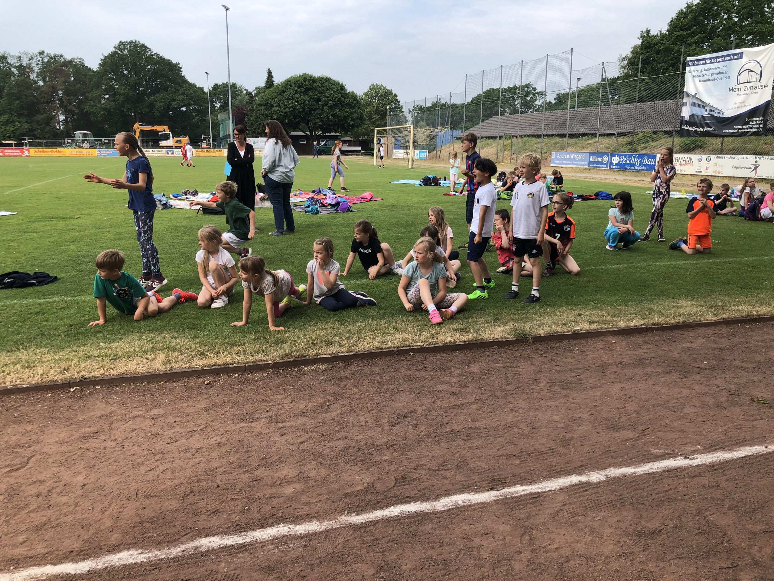 Zum Auftakt wurde das Lied „Unser Sportfest, das ist lustig“ gesungen und dann kämpften bei schönem Wetter die Grundschüler im Dreikampf um Punkte.