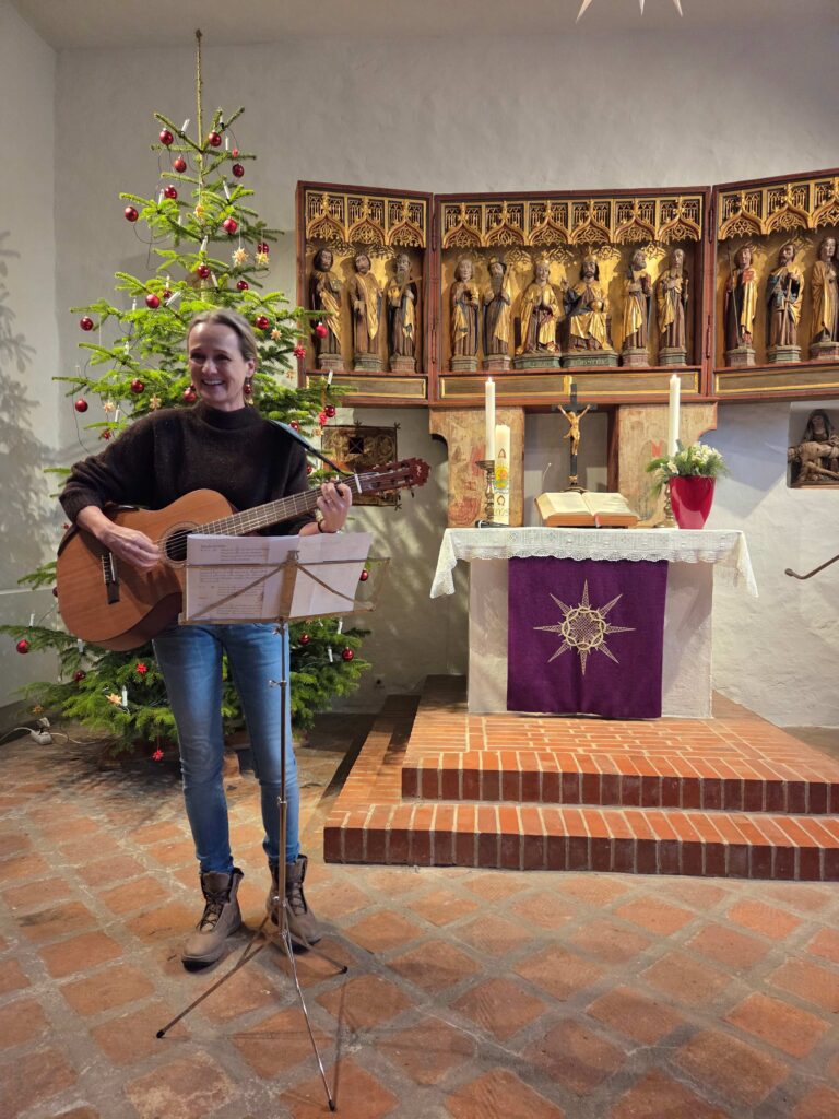 Musikalisch wurde der Gottesdienst durch mehrere Lieder bereichert, unter anderem „Feliz Navidad“, „Weihnachten ist auch für dich“ und das bekannte „Alle Jahre wieder“. Alle haben mit viel Begeisterung gesungen und Bewegungen ausgeführt.