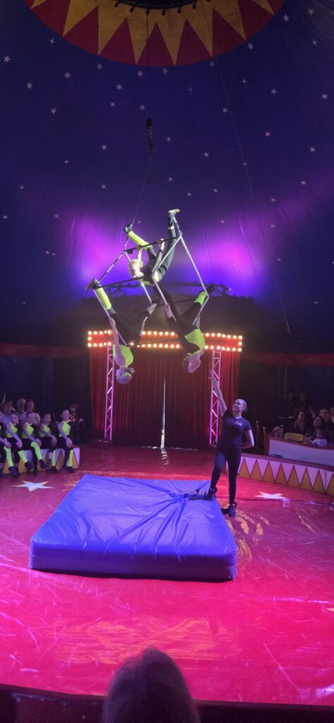 - Akrobatik & Luftakrobatik: Hoch oben unter der Zeltkuppel bewiesen unsere Luftakrobaten anmutige Stärke, während am Boden menschliche Pyramiden gebaut wurden. Es war atemberaubend zu sehen, wie sehr die Kinder einander vertrauten.