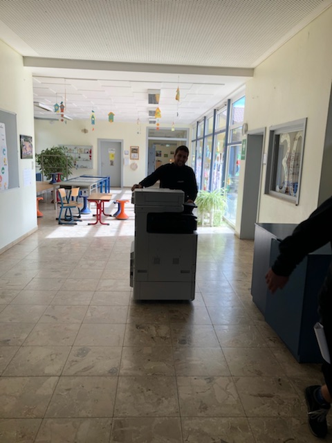 Heute bekamen wir endlich unseren neuen Kopierere. Er durfte in den alten Kopierraum einziehen und wurde bereits von allen mit Begeisterung erwartet.