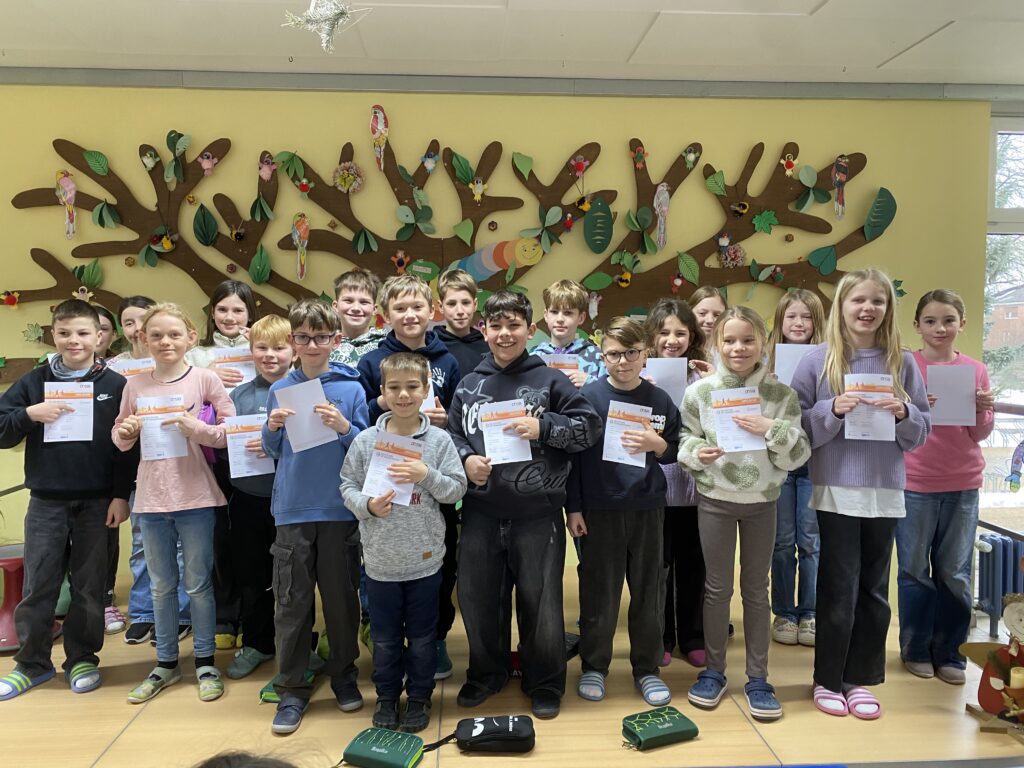 Am 12.01.26 fand die Übergabe der Sportabzeichen an der Ovakara Grundschule Hillerse statt. Insgesamt konnten 48 Schülerinnen und Schüler im Jahr 2025 ein Sportabzeichen erlangen. In den Kategorien Ausdauer, Kraft, Schnelligkeit und Koordination mussten die Kinder bestimmte Leistungen erbringen sowie ihre Schwimmfähigkeit unter Beweis stellen.