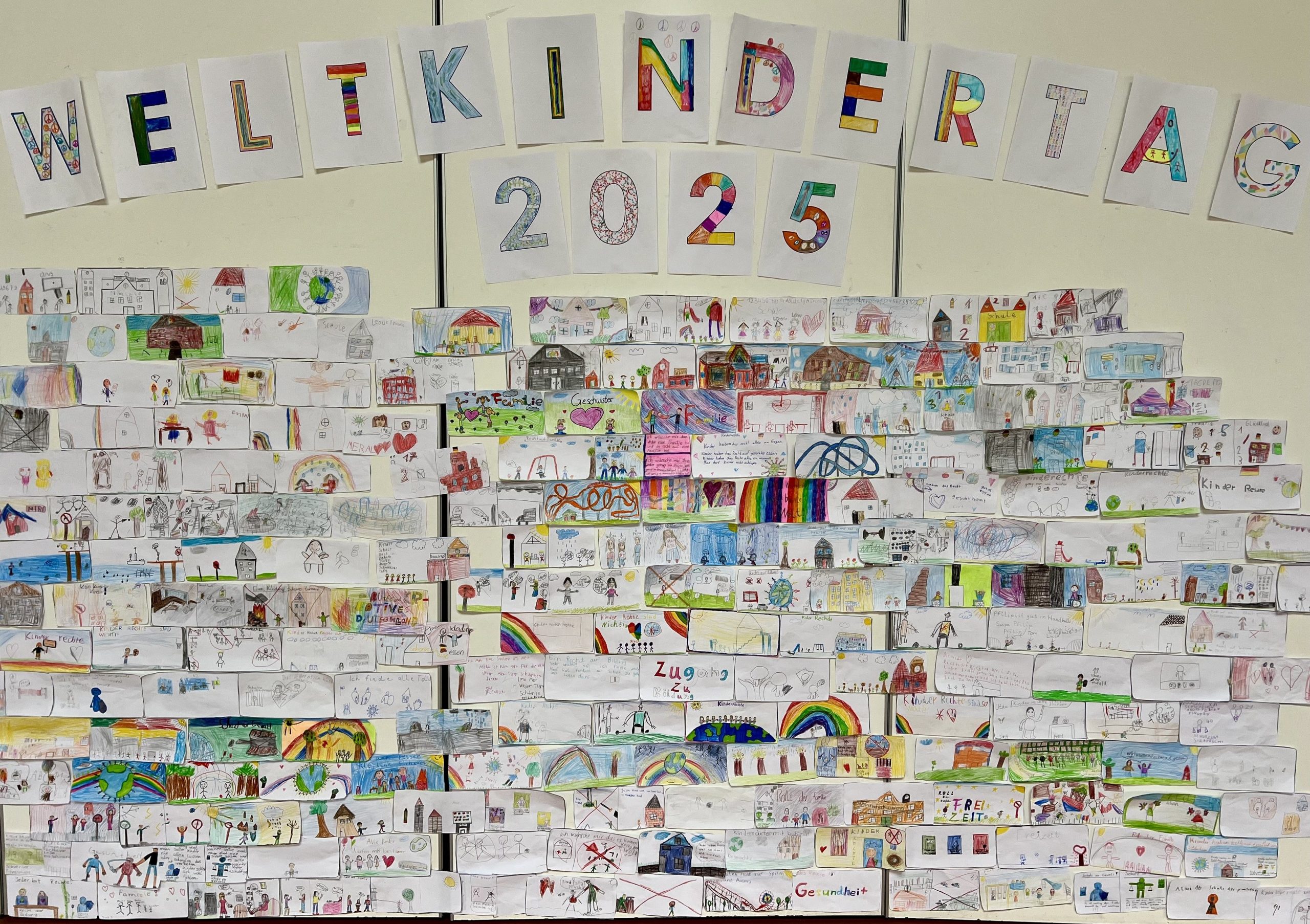 Zudem wurde in den Klassen im Unterricht an den verschiedenen Kinderrechten gearbeitet. Dieses wird nun durch eine immer bunter werdende Stellwand in der Aula zum Thema kenntlich gemacht.