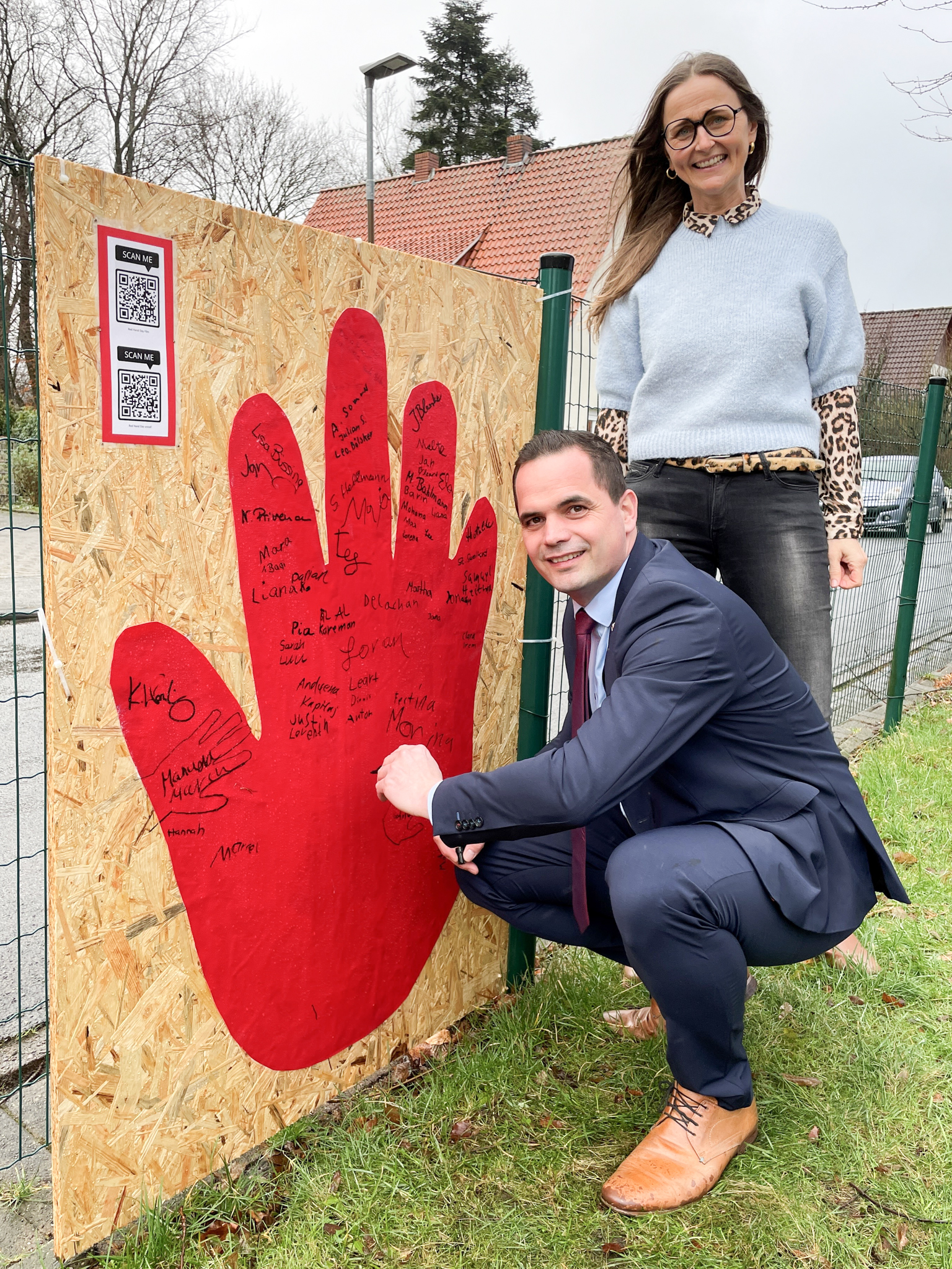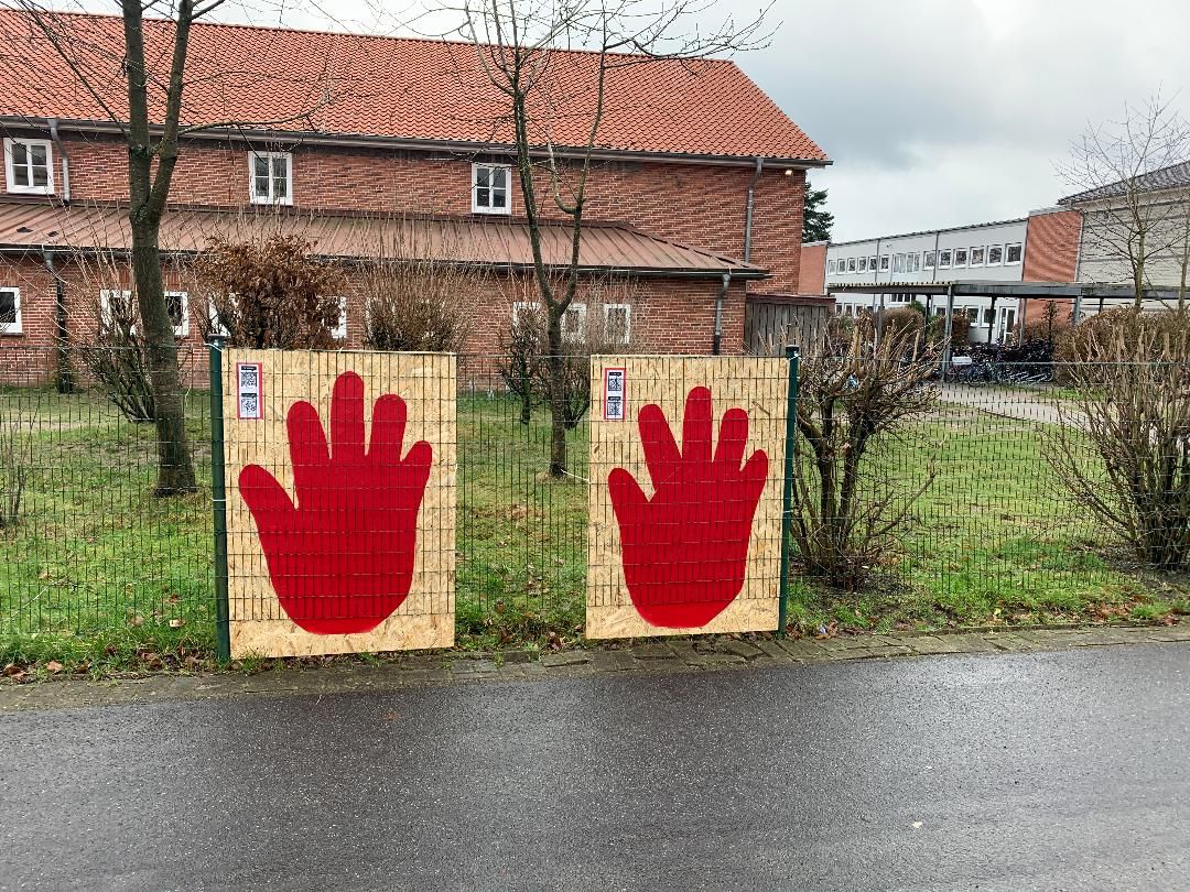 - Eine Mitmachaktion für alle Interessierten an der Zauneingrenzung der Schule.