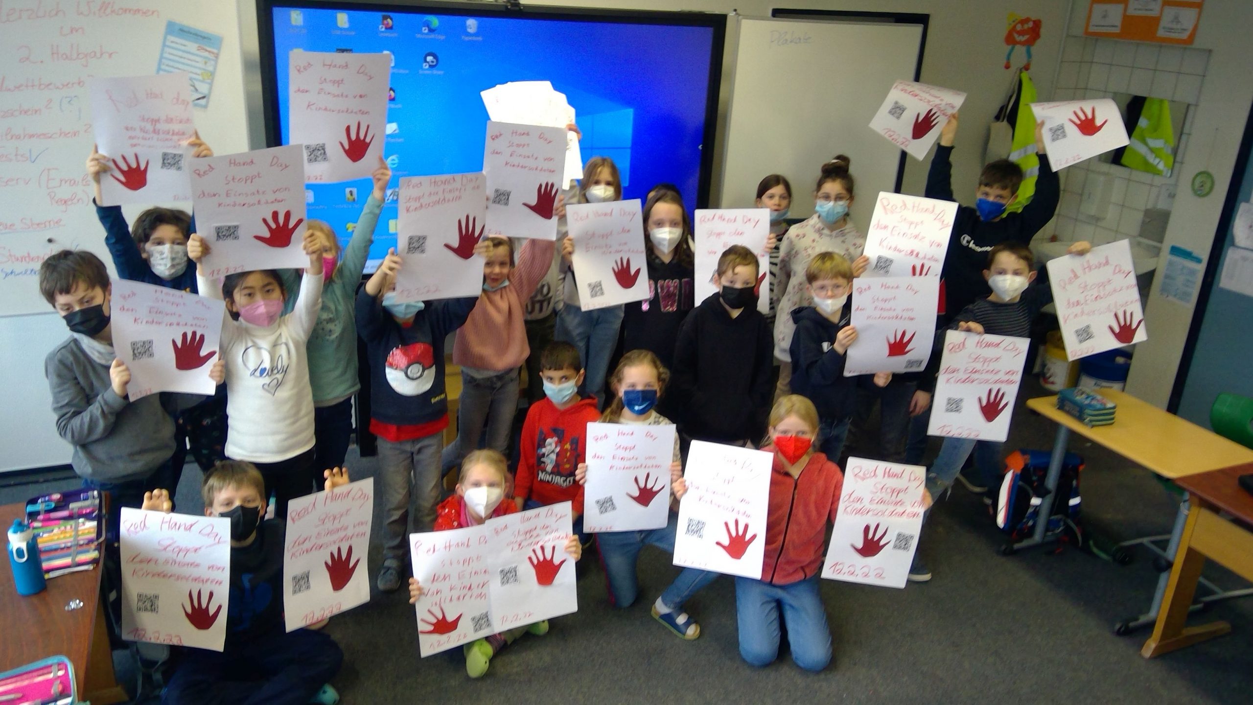 Die Schule befindet sich seit einigen Monaten in dem Prozess zur Entwicklung einer Kinderrechte Schule. Somit wollten die Schülerinnen und Schüler der Overbergschule besonders in diesem Jahr auf den Missbrauch von Kindern als Kindersoldaten aufmerksam machen. In kreativen und selbstbestimmten Prozessen sind verschiedene Aktionen entwickelt worden:
