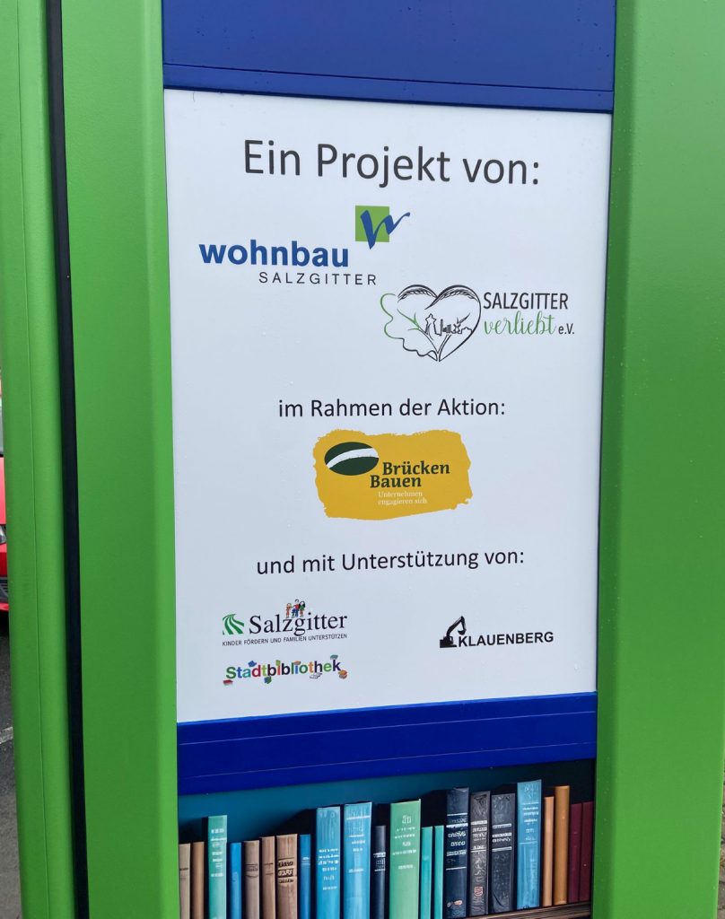 An diesem Tag wurde in Zusammenarbeit mit der Wohnbau Salzgitter und der Bürgerstiftung Salzgitter ein besonderes Projekt feierlich eingeweiht: ein öffentlicher Bücherschrank mit einer Lesebank direkt in Gebhardshagen.