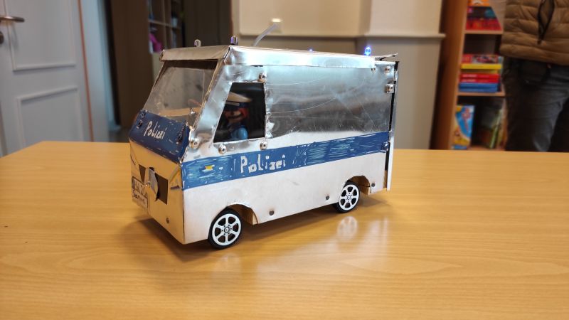 Justin entwarf das Auto in Zusammenarbeit mit unserem Ergotherapeuten. Die Idee des Autos stammt von Justin und den Hauptteil der Arbeit hat er selbst gemeistert.