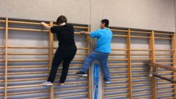In der AG Klettern können die Grundlagen und -techniken des Sportkletterns erlebt, erprobt und erlernt werden. Neben dem Bouldern, also dem Klettern in Bodennähe ohne Seilsicherung, wird natürlich auch das Topropeklettern trainiert. Beim Topropeklettern steigt der Kletterer in die Höhe, ist aber die ganze Zeit von oben mit dem Seil gesichert und kann so gefahrlos die Spannung in der Höhe genießen. Außerdem ist das Topropeklettern die perfekte Methode, Grundtechniken und den Umgang mit dem Material kennen zu lernen.