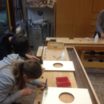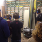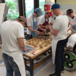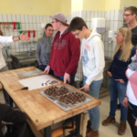 Dort teilen wir uns in 2 Gruppen auf: Holztechnik und Bäckerei.