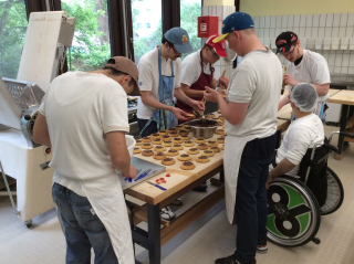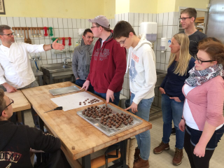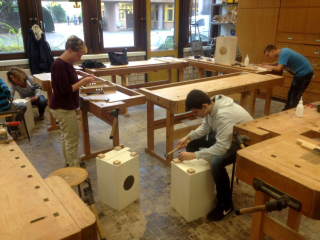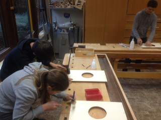 Dort teilen wir uns in 2 Gruppen auf: Holztechnik und Bäckerei.
