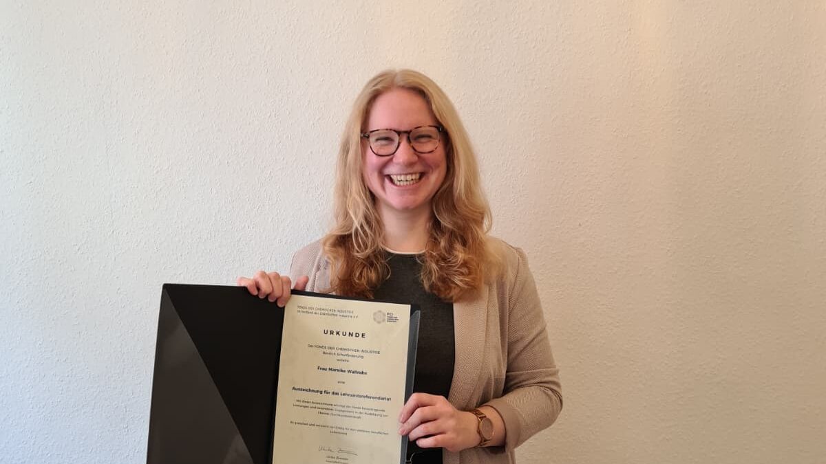 Unsere ehemalige Lehrkraft im Vorbereitungsdienst, StR‘ Mareike Wallrabe, wurde vom Fonds der Chemischen Industrie (FCI) für herausragende Leistungen in der Ausbildung zur Chemielehrkraft ausgezeichnet. Dazu gratulieren wir sehr herzlich und sind stolz auf diese Auszeichnung.