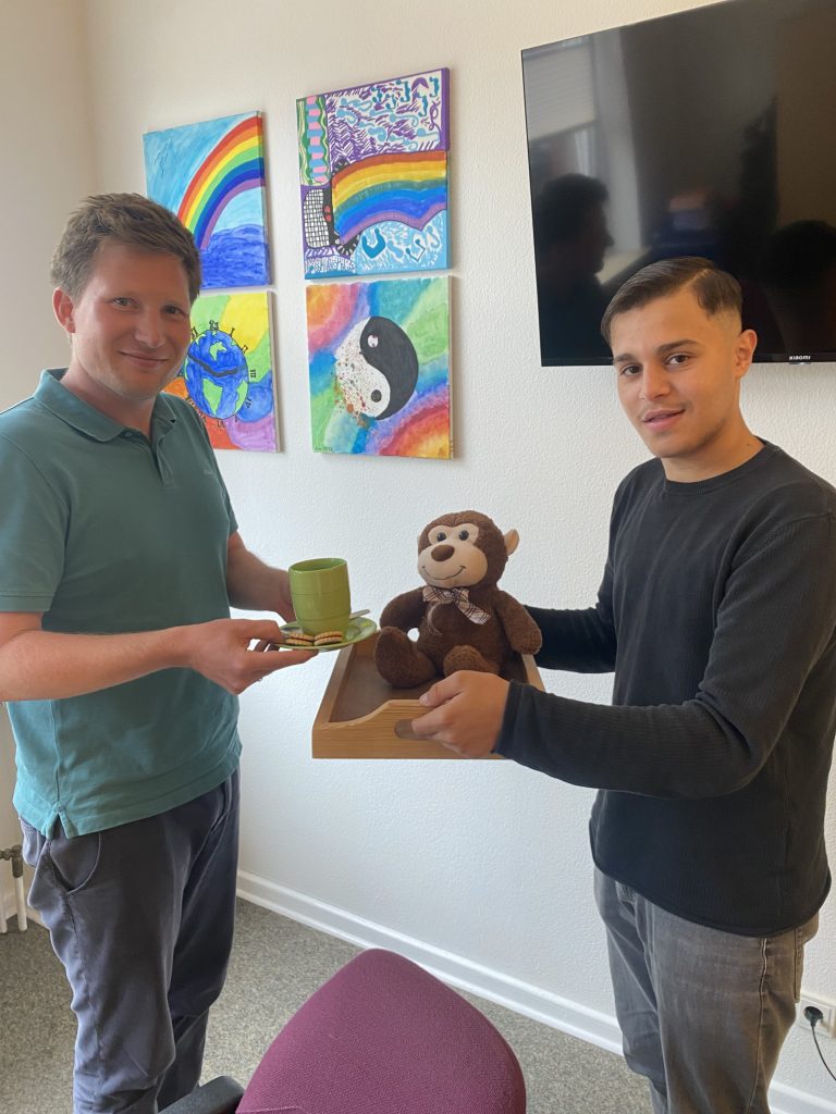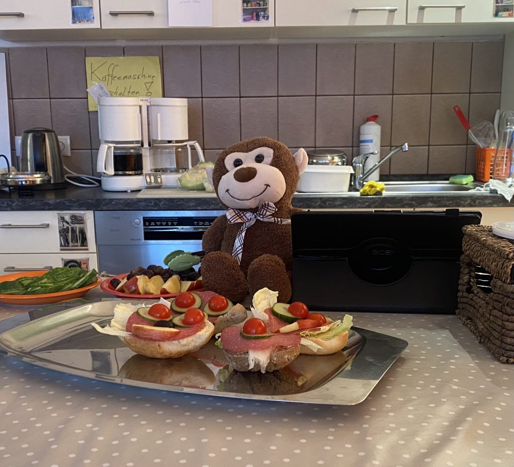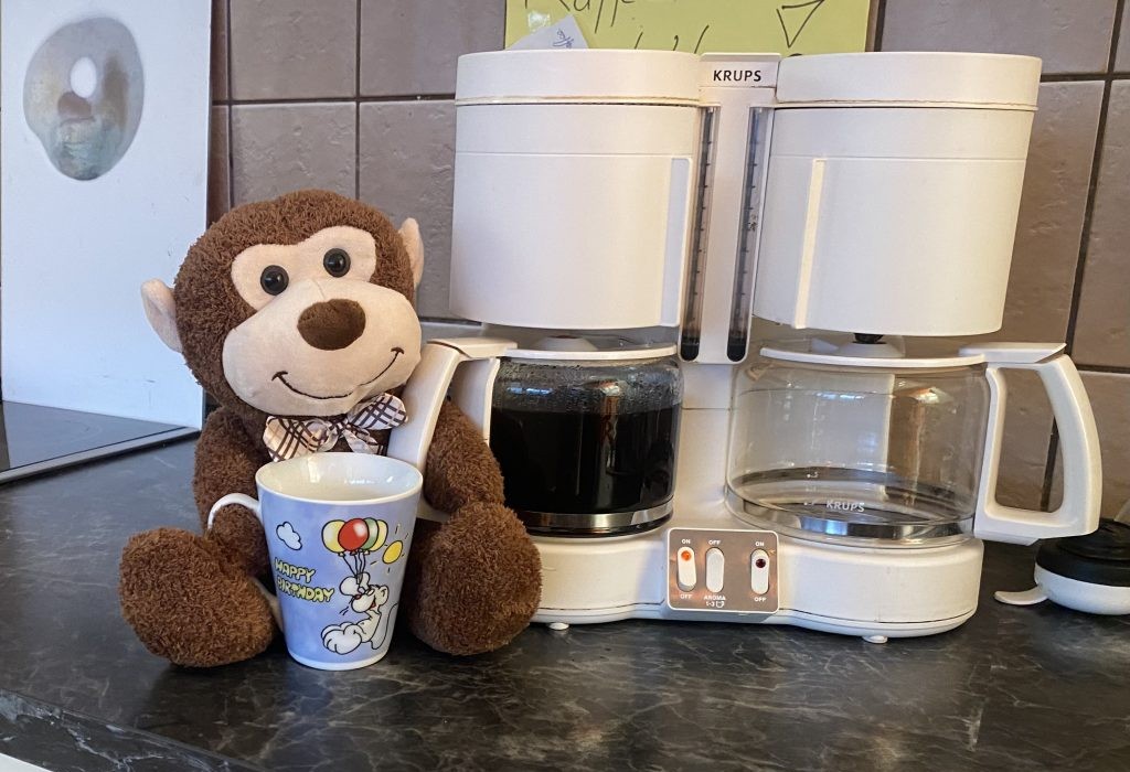 In unserem Schulcafé gibt es jetzt nicht nur Kaffee, Kakao und Brötchen – sondern auch einen neuen Mitarbeiter: ein flauschiger Affe!