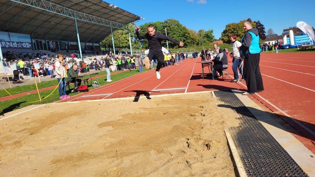 Auch die Wilhelm-Busch-Schule war mit einem Bus angereist. Die Schüler:innen traten in den Disziplinen Weitsprung, Weitwurf und Sprint an, um ihr Sportabzeichen oder das Mehrkampf-Abzeichen zu erwerben. Dafür wurde zuvor im Sportunterricht fleißig trainiert. Alle Schüler:innen gaben ihr Bestes und erzielten beeindruckende Leistungen. Die jüngeren Schüler:innen, die nicht an den Disziplinen teilnahmen, konnten sich auf dem nebenbei stattfindenden Spielefest vergnügen. Die Stimmung war aufgrund der tollen Leistungen und des guten Wetters bestens. Das besondere Highlight des Tages war das Maskottchen “Spurti”, mit dem viele Schüler:innen einmal kuschelten. Auf der abschließenden Siegerehrung wurden alle teilnehmenden Schulen mit tosendem Applaus belohnt.