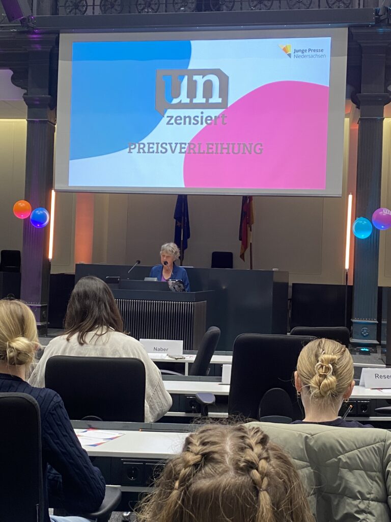 Die Preisverleihung fand am 12.03.2026 im Forum des Niedersächsischen Landtags in Hannover statt. Dort wurden die Gewinnerredaktionen für ihre journalistische Arbeit geehrt. Die Präsidentin des Niedersächsischen Landtags, Hanna Naber, lobte das Engagement der Schülerinnen und Schüler: „Ihr habt Dinge sichtbar gemacht.“ Sie betonte außerdem, dass Demokratie davon lebe, dass Menschen sich eine Meinung bilden und sich einmischen. Schülerzeitungen seien deshalb ein wichtiger Teil der Demokratiebildung.