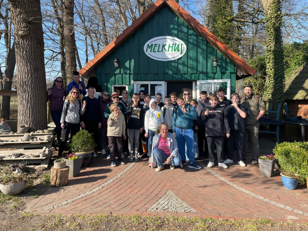 Am 1. April 2025 kamen die drei Klassen von Frau Pöppelmeyer (GE 6-8b), Wesselmann (GE 6-9) und Steindorf (ESE 4) mit zwei Bullis und zwei Autos in Wulsbüttel am Haus am Paschberg an – mitten im