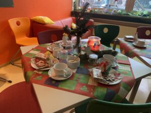 Zu einem adventlichen Frühstück im Schulcafé eingeladen kamen am 4.Dezember Seniorinnen und Senioren gemeinsam mit einigen Pflegekräften und der Leiterin des Hauses zu uns in die WBS.