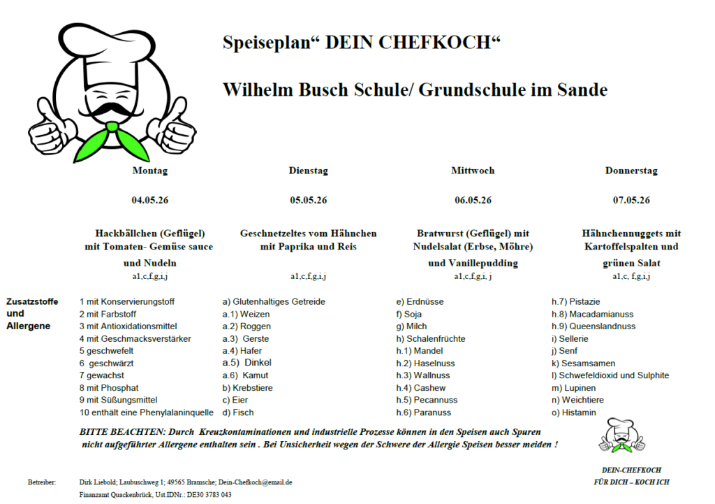 | Montag | Dienstag | Mittwoch | Donnerstag | Freitag | Samstag | Sonntag | |||