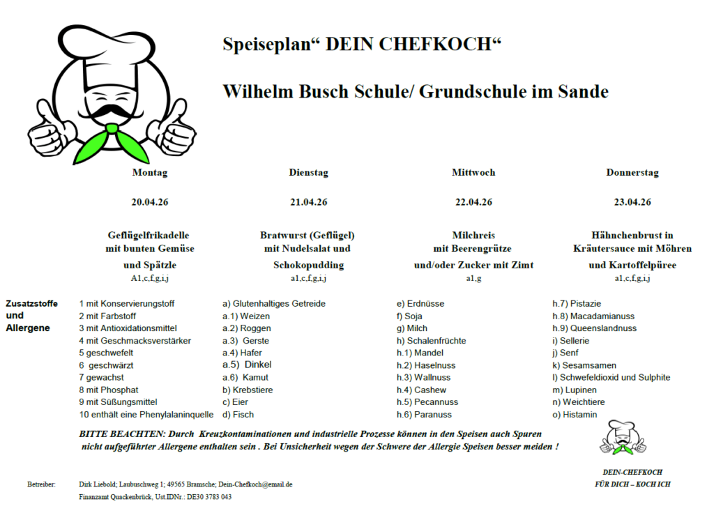 | Montag | Dienstag | Mittwoch | Donnerstag | Freitag | Samstag | Sonntag | |||